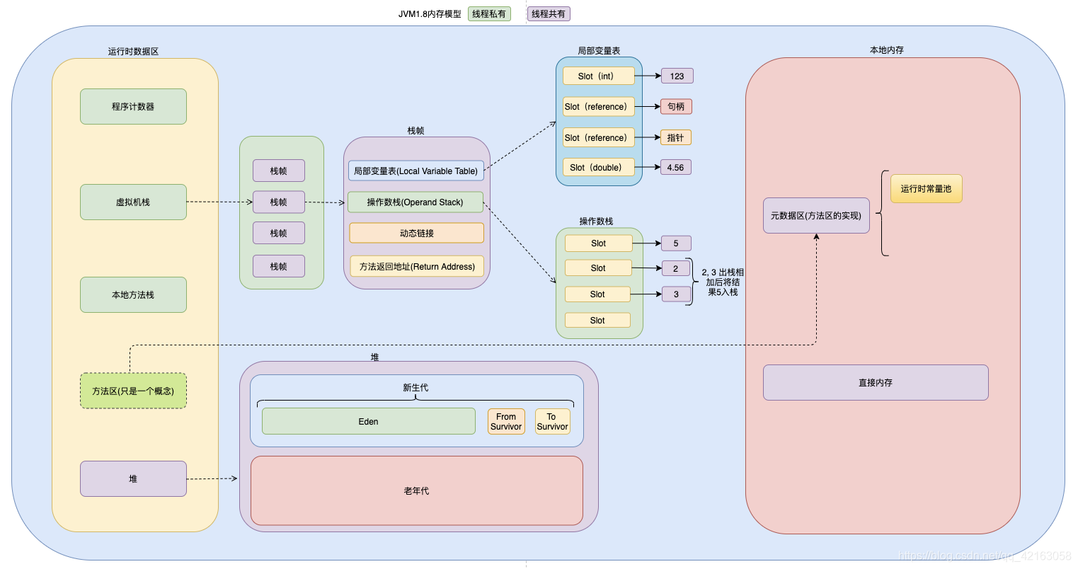 JVM 栈帧是一个精巧的"执行上下文容器" 。它不仅保存了方法运行所需的数据(局部变量、操作数),还维护了 控制流(返回地址) 和 语义链接(动态链接),使得 Java 的动态性、安全性、跨平台性得以实现。