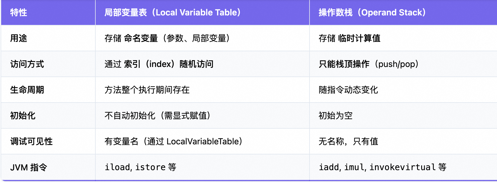 → 于是有了 局部变量表(Local Variable Table) ------ 它是方法的"变量仓库"。