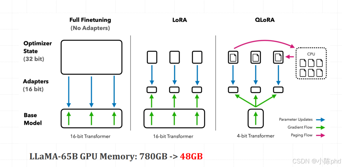 - 预训练成本高(780GB 显存)→ 基础大模型无法为每个场景重新训练,微调是 "低成本适配场景" 的方式;