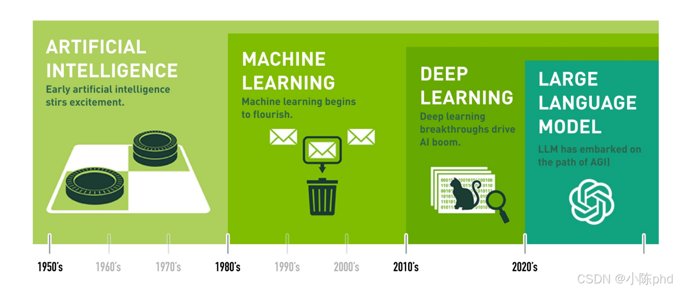 - 深度学习(2010s):深度神经网络+GPU算力,AlexNet、AlphaGo推动AI大规模应用。