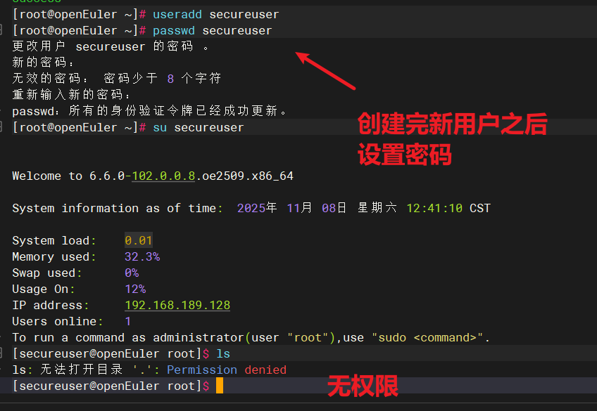 这条命令就是然这个用户有很大的权限这样能操作我们的openEuler 操作系统