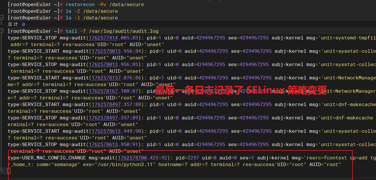 在实际生产环境中,建议结合 openEuler 的安全机制,定期进行加固与审计,保障系统稳定与数据安全: