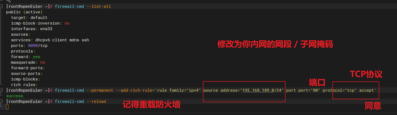 firewall-cmd --permanent --add-rich-rule='rule family="ipv4" source address="192.168.189.0/24" port port="80" protocol="tcp" accept'