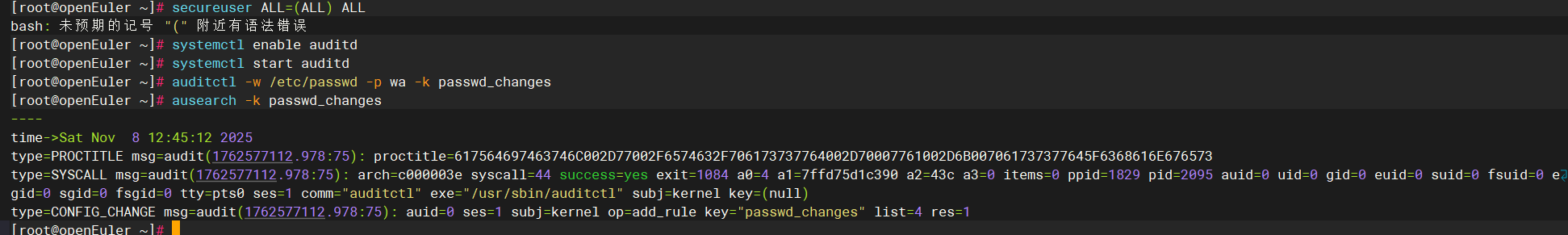 openEuler 集成 auditd,可实现关键操作的实时监控和日志审计。