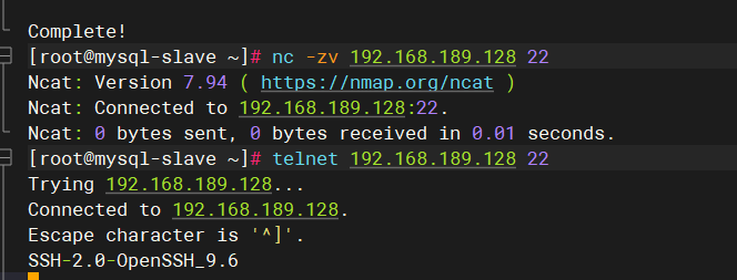 telnet 服务器IP 3306