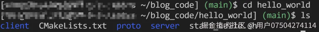 另开一个终端,在blog_code/hello_world/build/client目录下执行