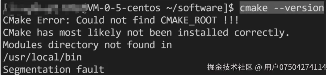 执行完毕后,再次执行 cmake --version, 出现了以下报错:
