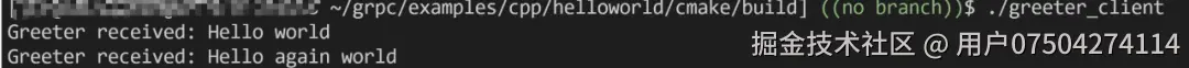 build成功之后,再次运行。依然在 examples/cpp/helloworld/cmake/build 目录下: