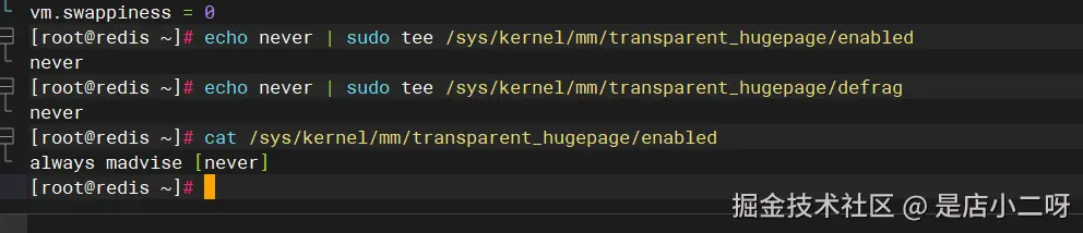 vm.swappiness = 0:尽量避免使用 swap,保证 Redis 性能 -