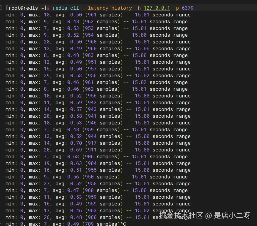 redis-cli --latency-history -h 127.0.0.1 -p 6379