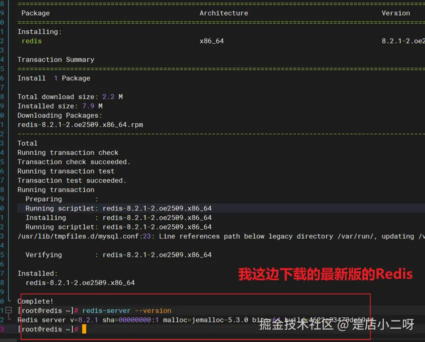 # 安装 Redis(openEuler 仓库已包含 Redis 7.x)