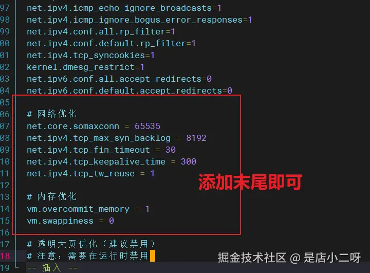 openEuler 提供了丰富的内核参数调优选项,针对 Redis 场景进行系统级优化: