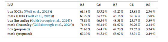 Table 3mAP for segmentation boxes and masks with different IoU threshold for UM dataset.