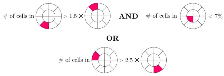 Fig. 5. User interface with explanations of cancer subtype predictions. Users need to predict cancer subtyping with the assistance of AI predictions based on cellappearance composition. Cell composition is visualized in a pie chart. Users can click any area in the pie chart to inspect the corresponding cell appearance. The AIprediction is shown with the evidence from the rule set criterion.