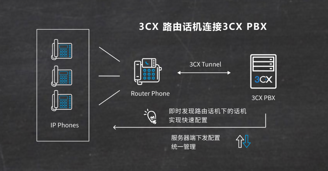 3CX 路由电话机并非字面意义上的网络路由器,而是指一个经过 3CX 认证的 IP 话机,被配置为在本地网络中充当 安全隧道代理 (Secure Tunnel Proxy) 的角色。