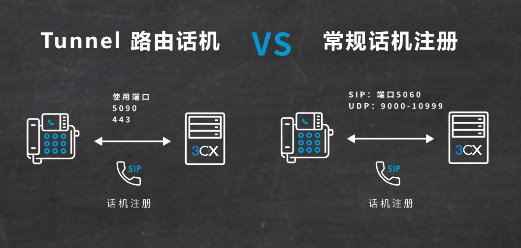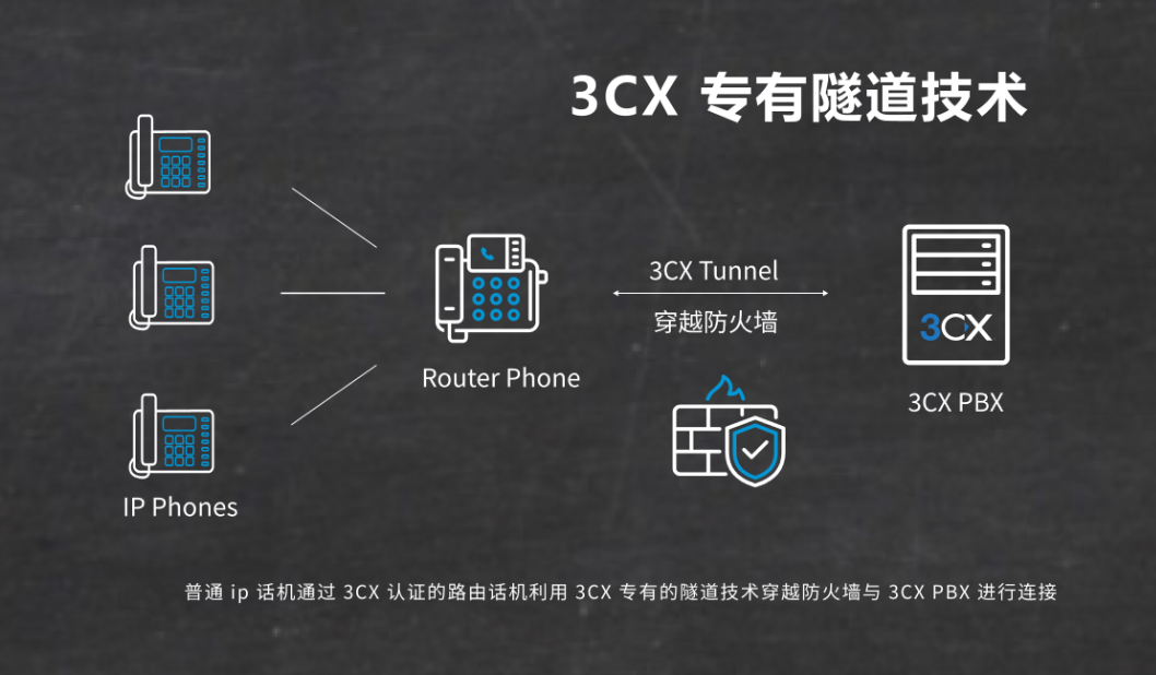 3CX 路由电话机功能正是为此设计,它提供了一种软件层面的安全网关方案,改变了传统点对点的连接模式。