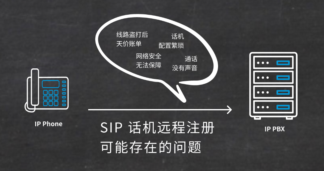 ●传统风险: 在没有路由电话机/SBC的情况下,云 PBX 必须向公网暴露其 SIP 端口(如 5060)来接收每个远程分机的连接。如果有一百个远程分机,就有可能有一百个公网 IP 地址尝试连接,攻击者可以轻易对这些暴露的端口进行暴力破解、DDoS 或话费欺诈注册尝试。