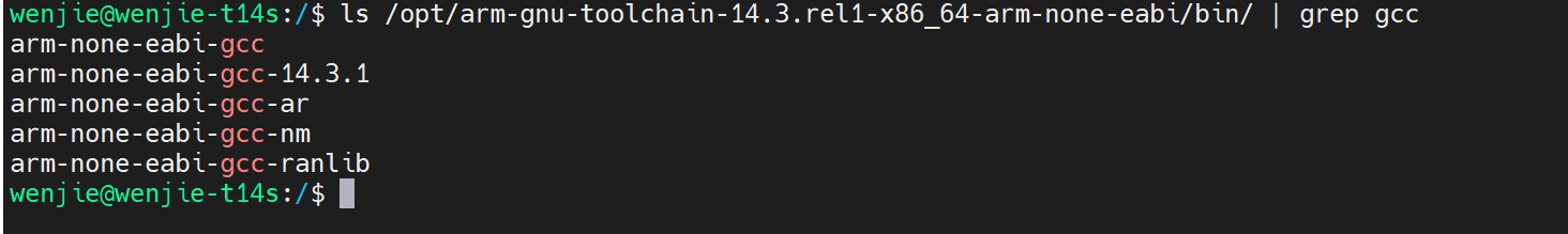 ls /opt/arm-gnu-toolchain-14.3.rel1-x86_64-arm-none-eabi/bin/ | grep gcc