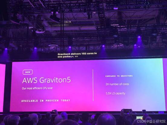 作为亚马逊云科技最强大、最高效的自研服务器CPU,Graviton5采用3nm制程与Neoverse V3核心架构,单芯片集成192个核心,核心数较上一代翻倍。这种高密度设计缩短了核心间数据传输距离,通信延迟降低33%、带宽同步提升,能支撑实时游戏、EDA等高频交互场景,通过快速数据交换实现负载灵活扩展。