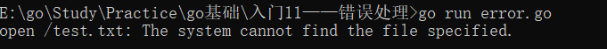 按照 Go 的惯例,在处理错误时,通常都是将返回的错误与 nil 比较。nil 值表示了没有错误发生,而非 nil 值表示出现了错误。
