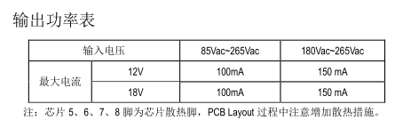 输入电压18V 最大电流 (85Vac-265Vac )100MA,(180Vac-265Vac)150MA.
