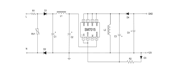 典型应用方案 SM7015 12V /150MA BUCK-BOOST方案
