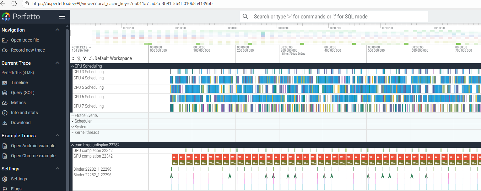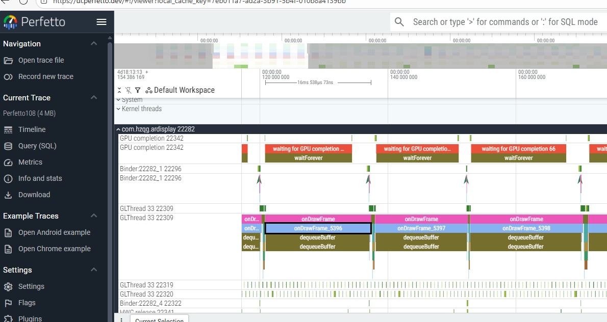 adb shell perfetto -o /data/misc/perfetto-traces/trace_file.perfetto-trace -t 1s -a com.hzqg.ardisplay sched freq idle am wm gfx view binder_driver hal dalvik camera input res memory