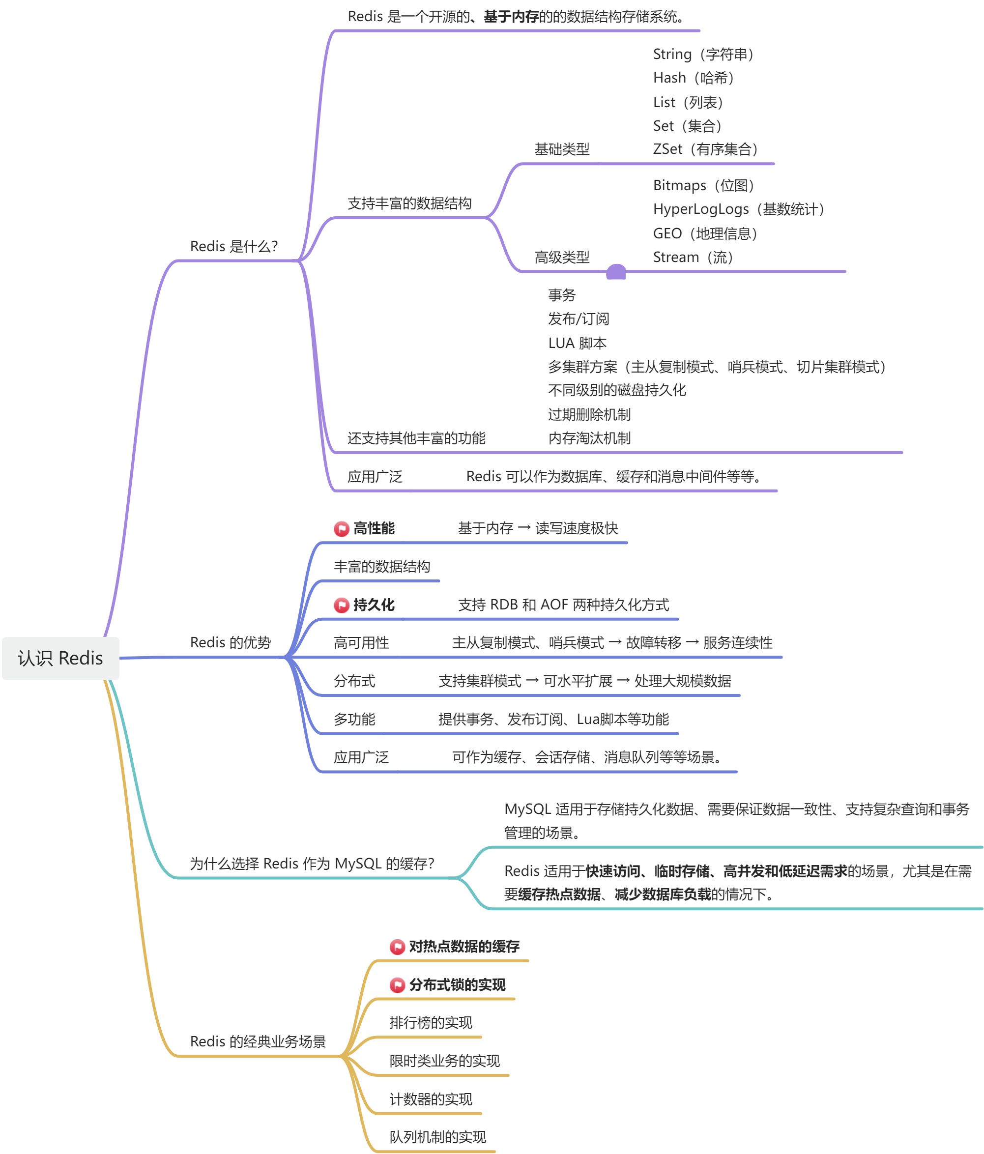 - 此外,Redis 还拥有其他丰富的功能,比如 发布订阅、Lua脚本、主从复制等功能。