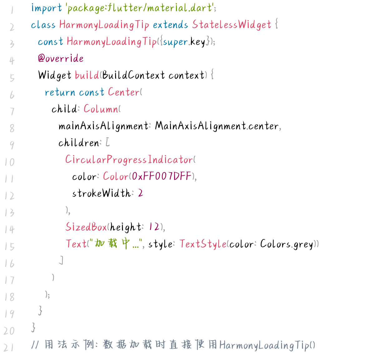 快速实现加载中状态展示,适配数据请求、页面加载等场景,带加载动画,提升用户等待体验,贴合鸿蒙设计风格。