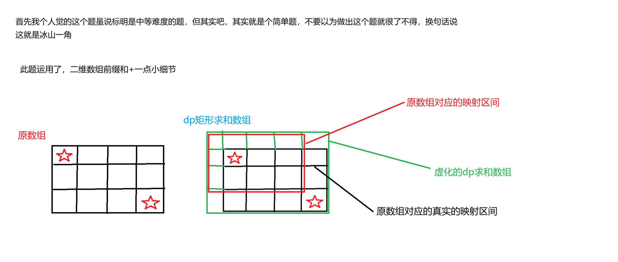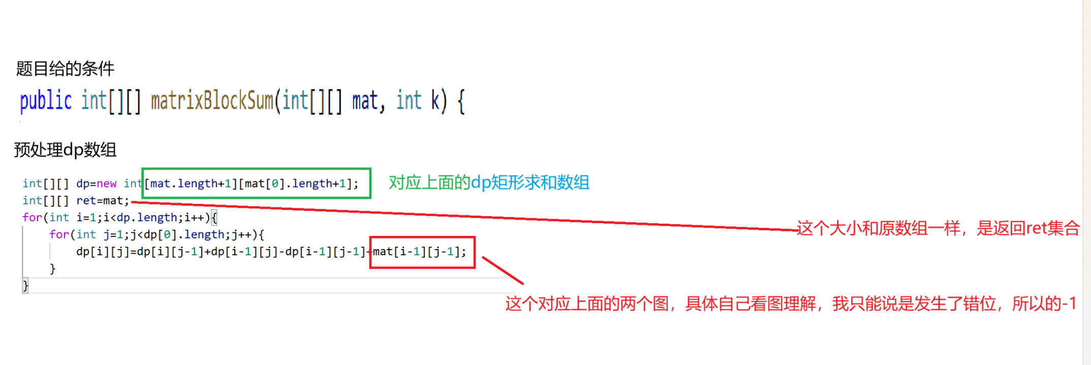 int[][] dp=new int[mat.length+1][mat[0].length+1];//dp数组大小,横纵大小要超出原数组一个单位