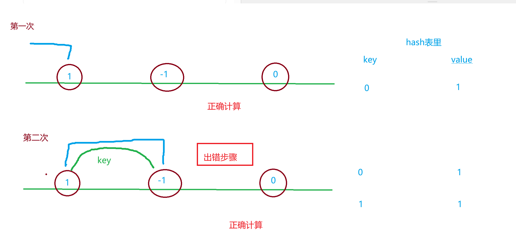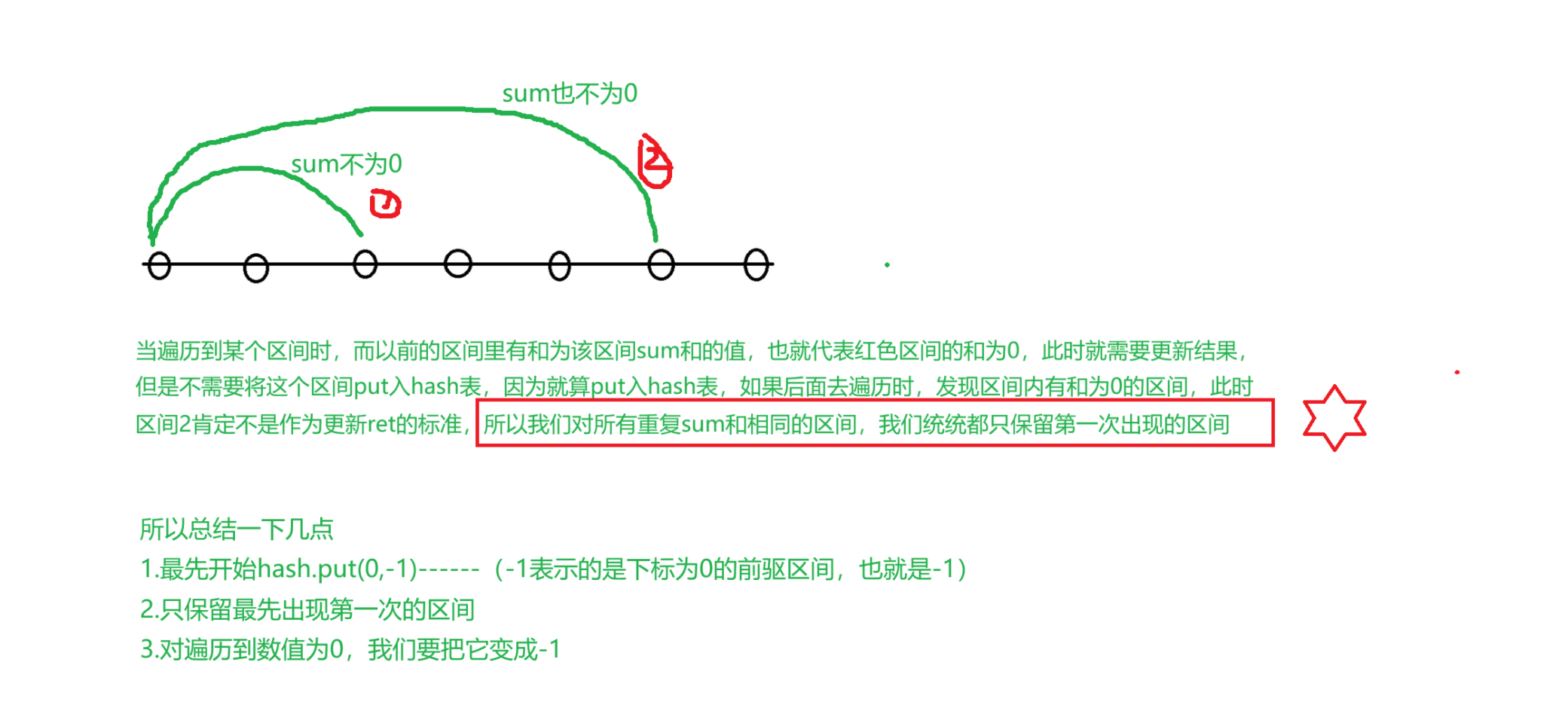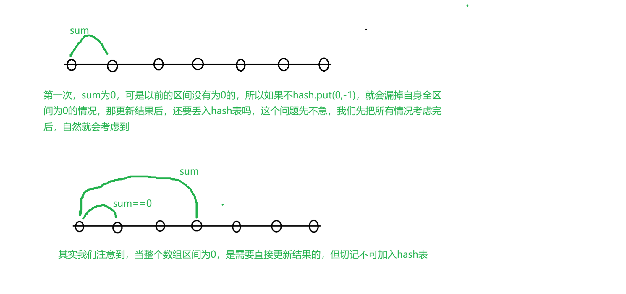 hash.put(0,-1);//预处理hash表,这个是整个区间为0区间的情况