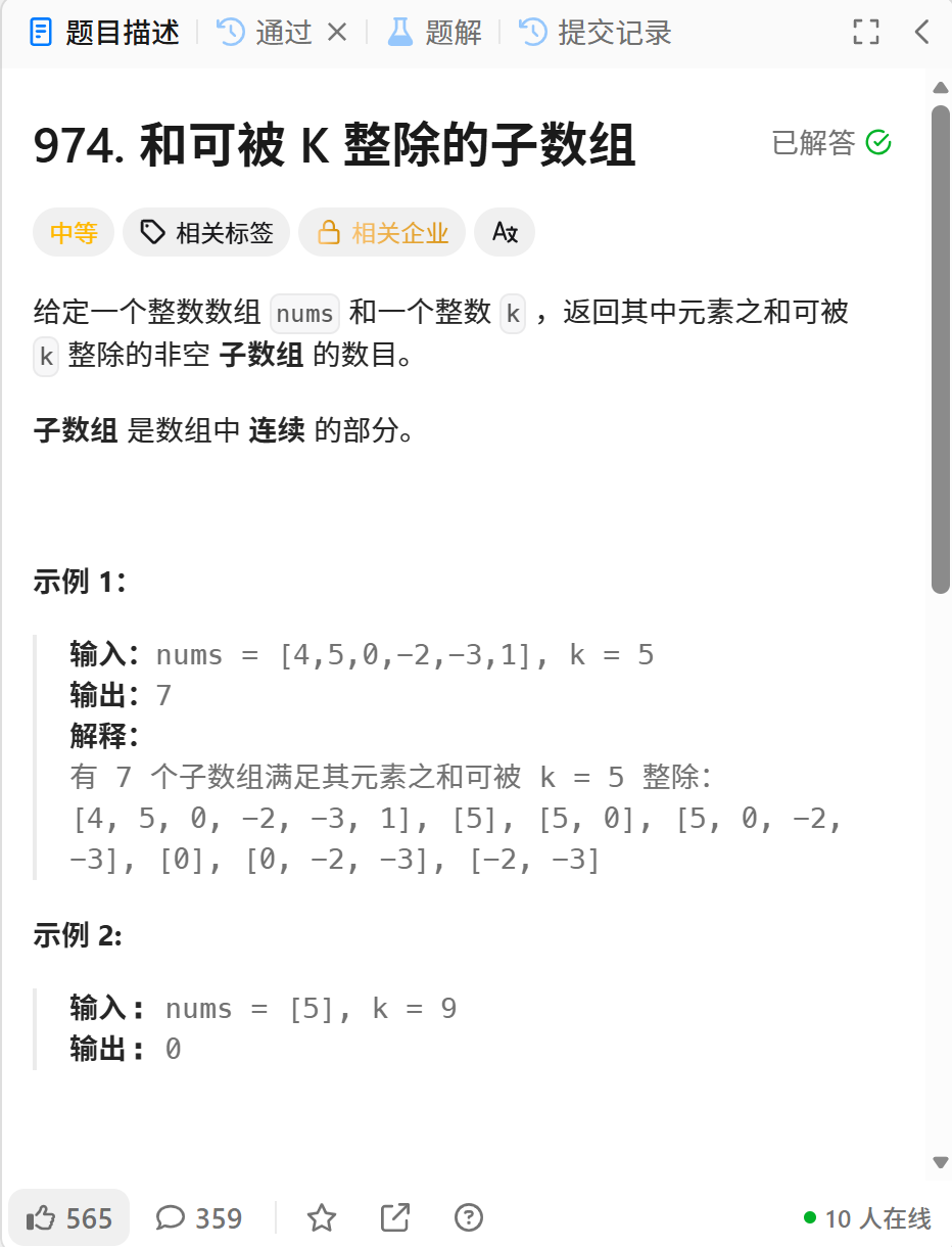 https://leetcode.cn/problems/subarray-sums-divisible-by-k/submissions/681926898/