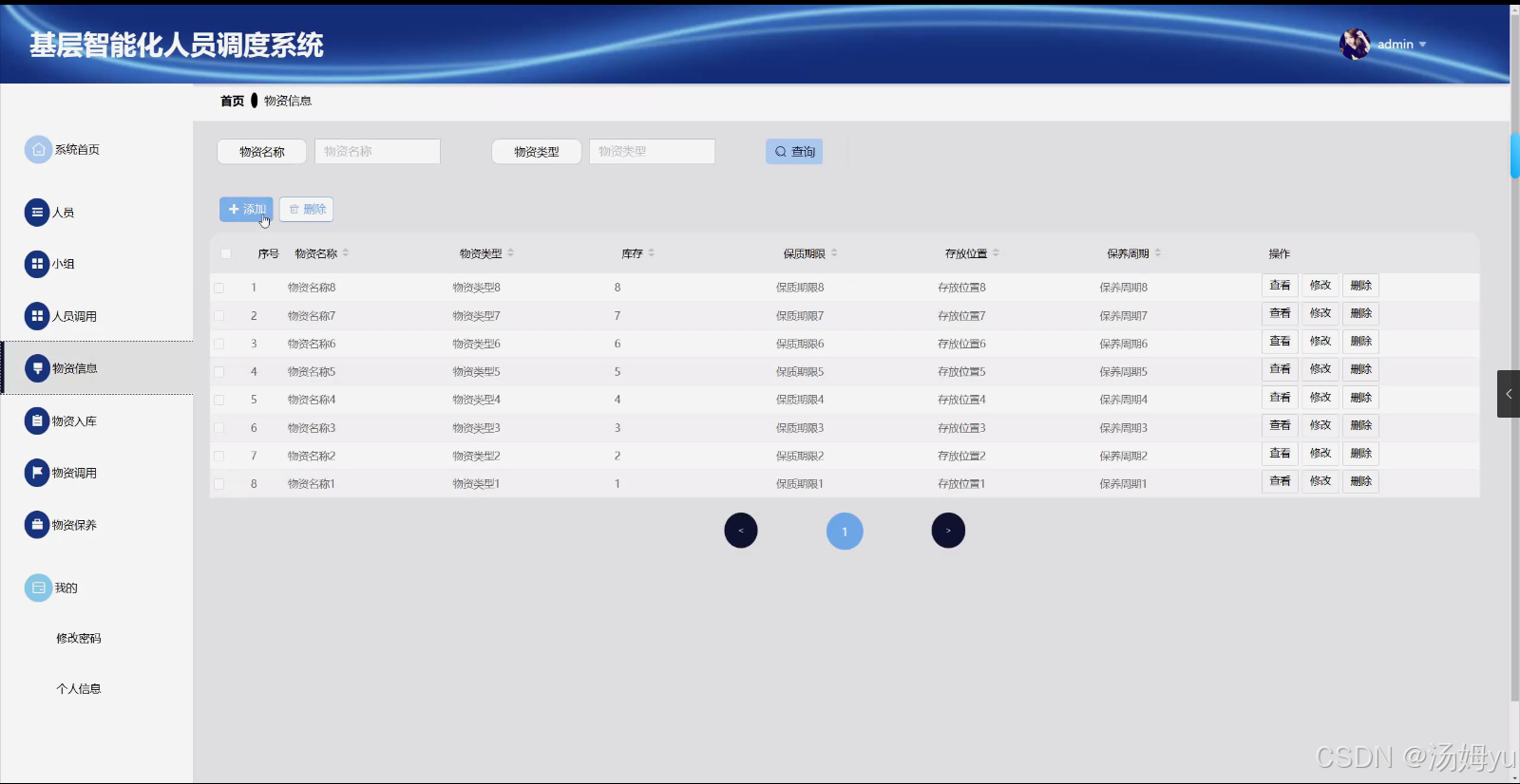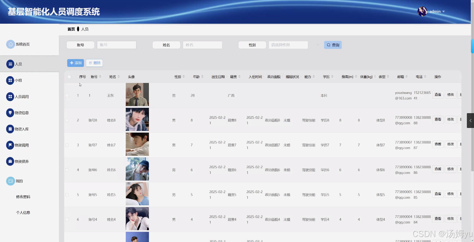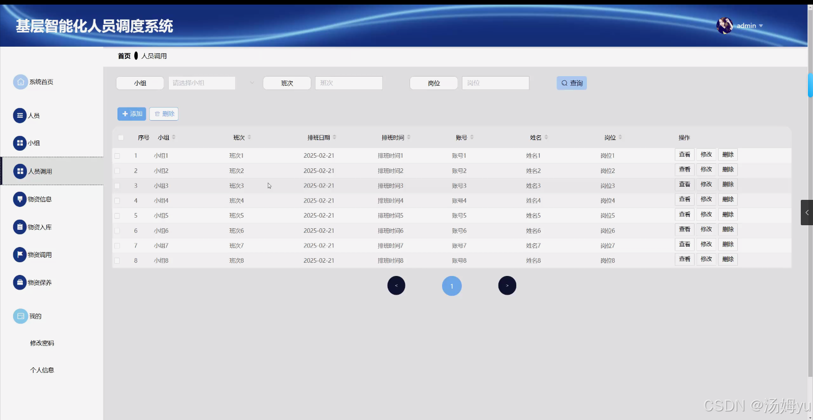 基层智能化人员调度系统旨在通过高效、灵活的管理手段,满足基层单位在人员与物资管理方面的多样化需求。从功能性需求来看,系统需具备完善的人员管理功能,支持管理员通过账号、姓名、性别等关键信息查询人员,并实现人员信息的添加、修改与删除操作,确保人员数据的完整性和准确性。系统应提供小组管理功能,允许管理员对小组进行查询、添加、删除及修改操作,以适应不同的任务分配和团队协作需求。在人员调用方面,系统需支持按小组、班次、岗位等条件查询和管理调用记录,实现灵活的排班与任务分配,并提供详细的调用说明和记录功能,便于追踪人员的工作安排。对于物资管理,系统应涵盖物资信息管理、物资入库、调用和保养等全流程功能。管理员可通过物资名称、类型查询物资信息,并对物资的库存、保质期限、存放位置等进行动态管理,确保物资的高效利用和精准调配。还需提供直观的系统首页,展示关键数据和实时信息,为管理员提供决策支持。通过这些功能模块的有机结合,系统将显著提升基层单位的管理效率,推动人员与物资管理向智能化、精细化方向发展。
