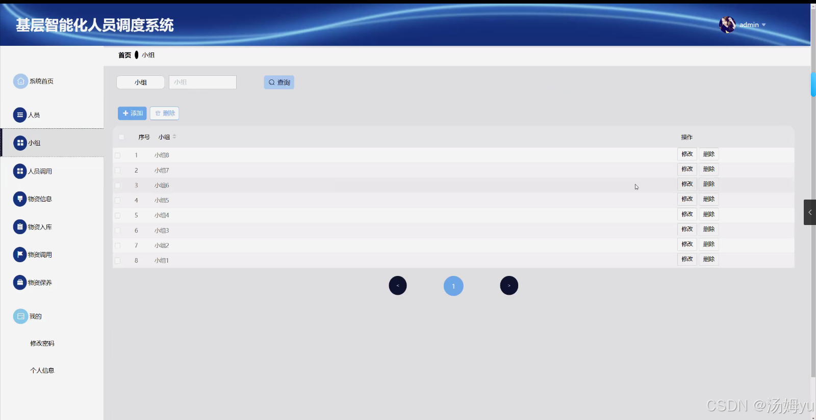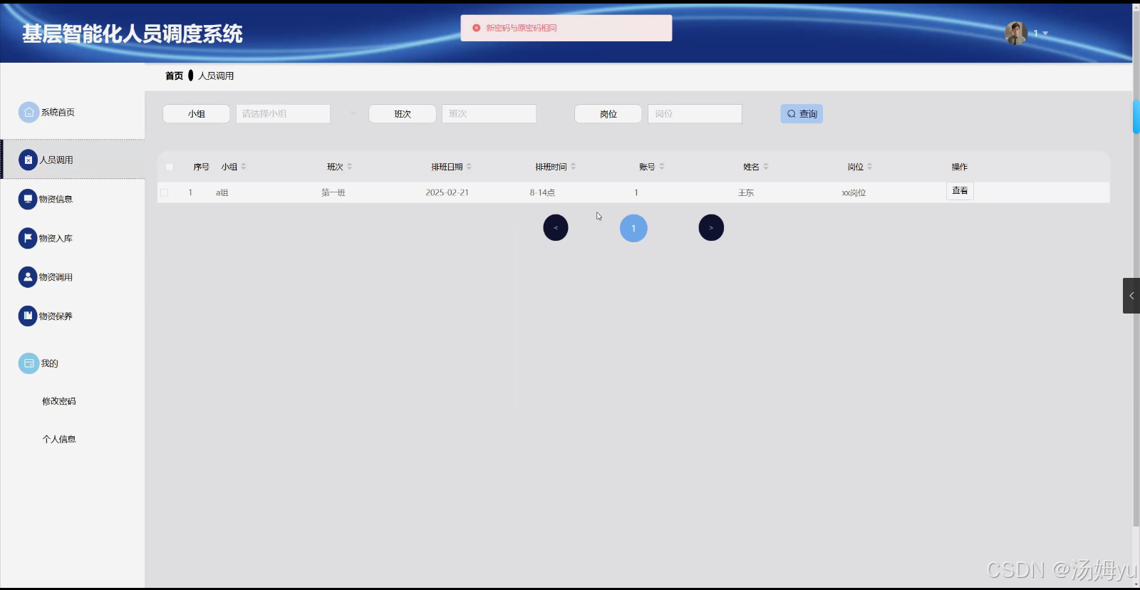 本研究开发一套基层智能化人员调度系统,以满足基层单位在人员管理和物资调配方面的高效化、智能化需求。系统的核心功能围绕人员与物资的全生命周期管理展开,涵盖了系统首页、人员管理、小组划分、人员调用、物资信息、物资入库、物资调用、物资保养以及个人中心等模块。系统首页作为用户交互的入口,提供直观的操作界面和实时信息展示,使管理者能够快速了解当前人员排班、物资库存等关键信息。在人员管理方面,系统通过详细记录人员的基本信息、岗位技能、排班记录等,实现对人员的精准调配和动态管理。小组功能则进一步优化人员管理,支持将人员按业务需求或任务类型划分为不同小组,便于集中管理和协同工作。人员调用模块能够根据任务需求和人员能力,自动或手动调整排班计划,确保人员安排的合理性和高效性。在物资管理方面,系统通过物资信息模块详细记录物资的基本属性、库存数量、存放位置等信息,为物资的精细化管理提供基础数据支持。物资入库模块实现了物资采购后的快速登记和入库管理,支持批量操作和入库说明记录。物资调用功能则允许用户根据需求快速调配物资,并记录调用时间、数量和目的地,确保物资流转的可追溯性。物资保养模块则针对物资的维护需求,记录保养周期、保养内容和责任人,延长物资使用寿命并保障物资质量。系统还设有"我的"模块,为用户提供个人操作记录、权限管理等功能,提升用户体验。本研究通过整合人员与物资管理的各个环节,借助智能化技术手段,为基层单位打造一套高效、灵活且易于操作的管理系统,推动基层管理的现代化进程。