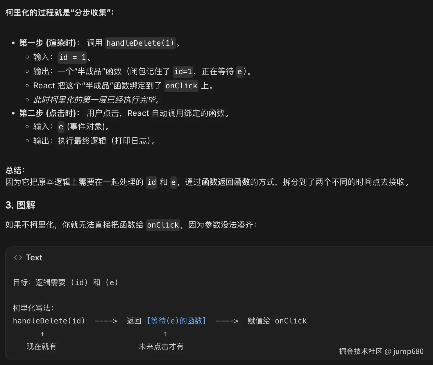 react在渲染时,onclick会执行{}中的函数。 如果 onclick={handlerDelete(id)} 那么在渲染的时候直接就执行了这个函数,还没有点击就删除了。