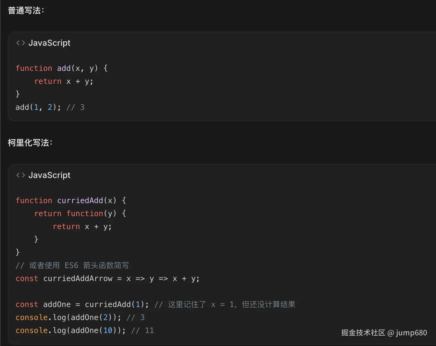 参数复用或延迟执行它使用闭包记住之前传递的参数。