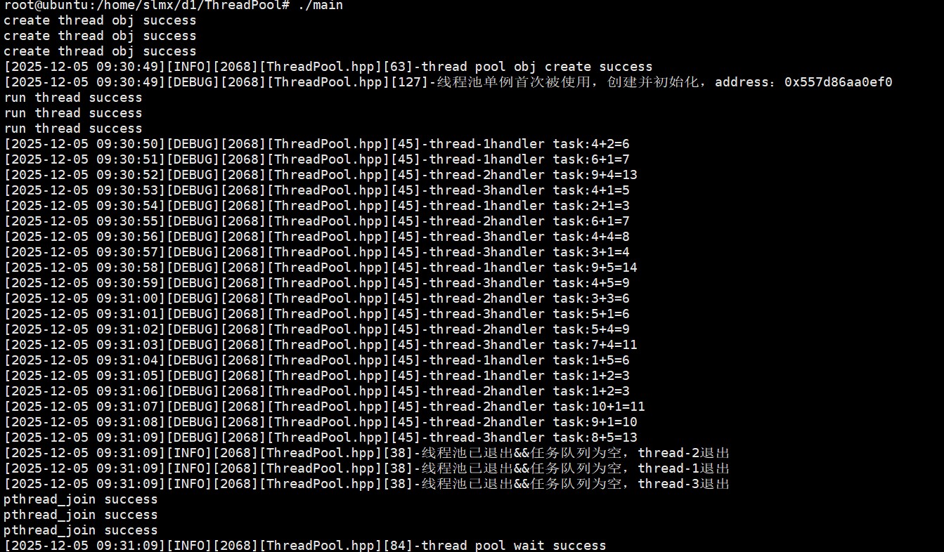 LOG(LogLevel::INFO)<<"thread pool wait success";