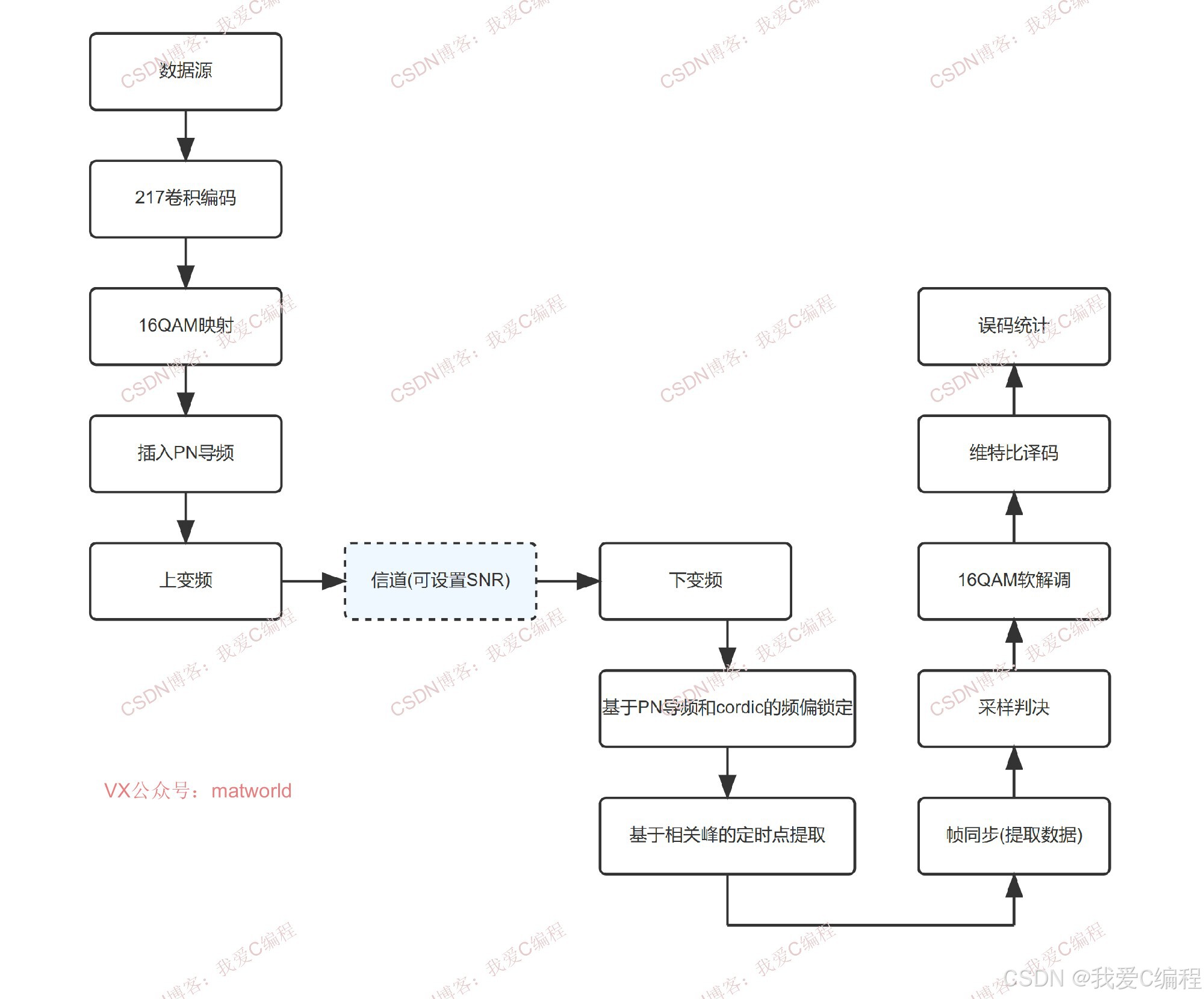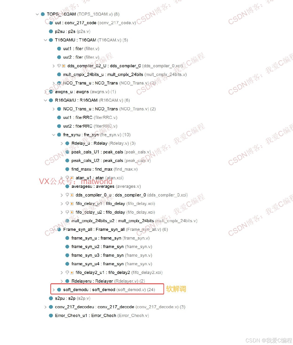 1\]王建军,徐力,安鹏.基于CORDIC的频偏估计幅角计算算法\[J\].微型机与应用, 2014, 33(7):3.DOI:10.3969/j.issn.1674-7720.2014.07.025. \[2\]向劲松,陈怀柔.QAM调制下基于卷积码与累加编码调制级联的纠错码性能研究\[J\].半导体光电, 2023(6):924-930. ## 6.完整算法代码文件获得 **完整程序见博客首页左侧或者打开本文底部** **V** **(V关注后回复码:X106)**
