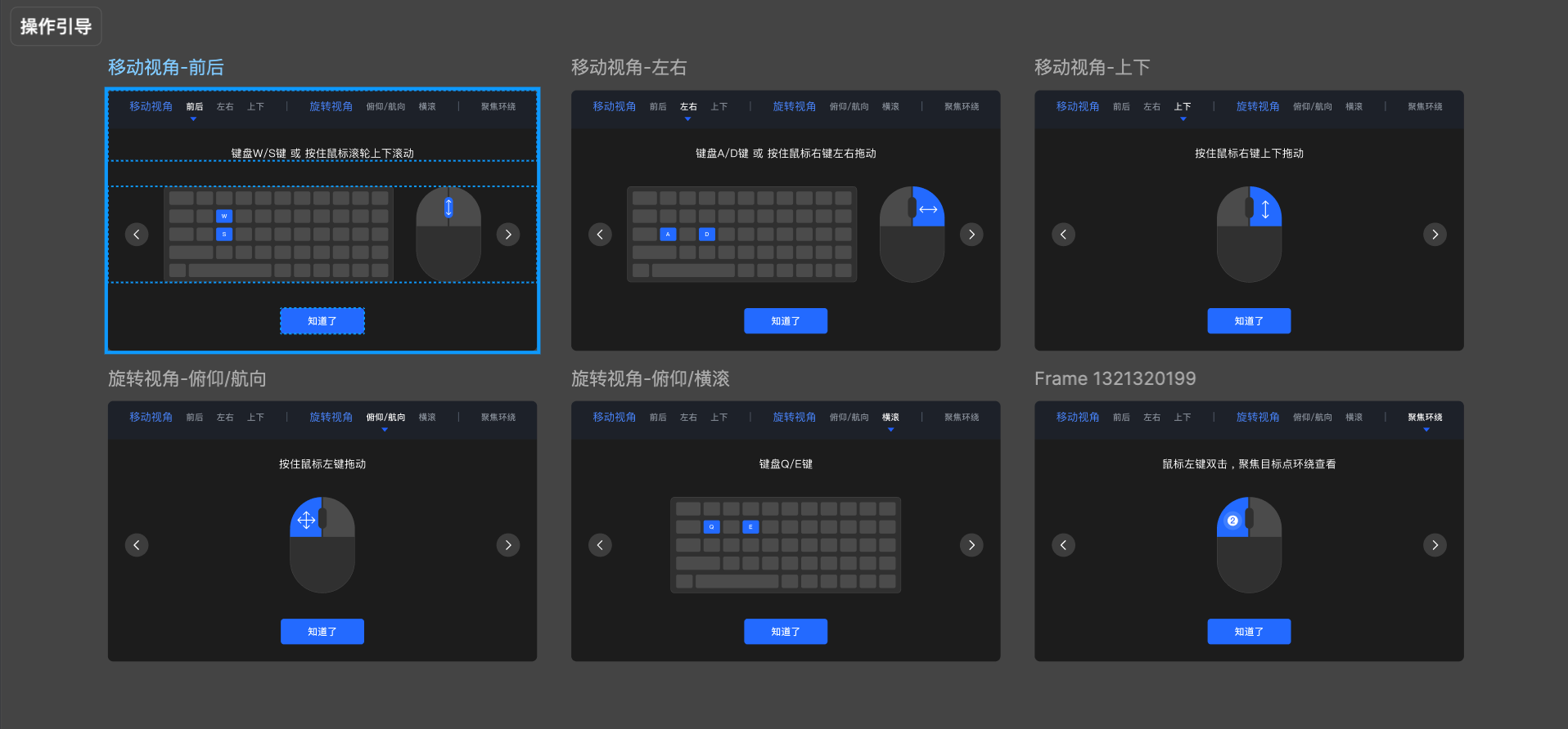 - 清晰说明 "移动视角 / 旋转视角 / 缩放" 的操作方式