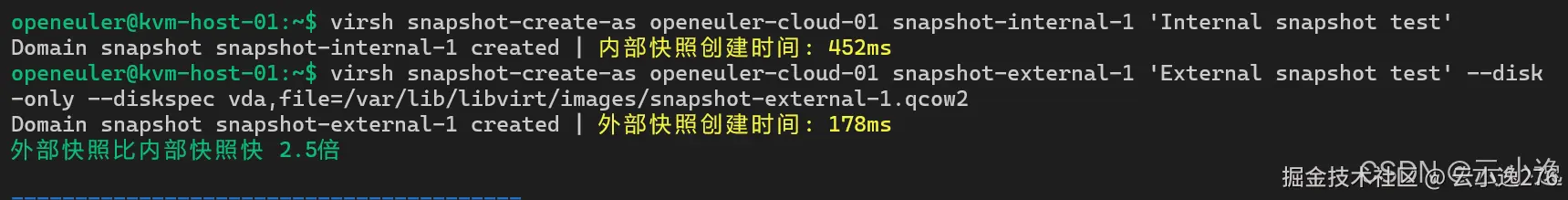 - 外部快照:比内部快照快2.5倍,适合频繁快照场景