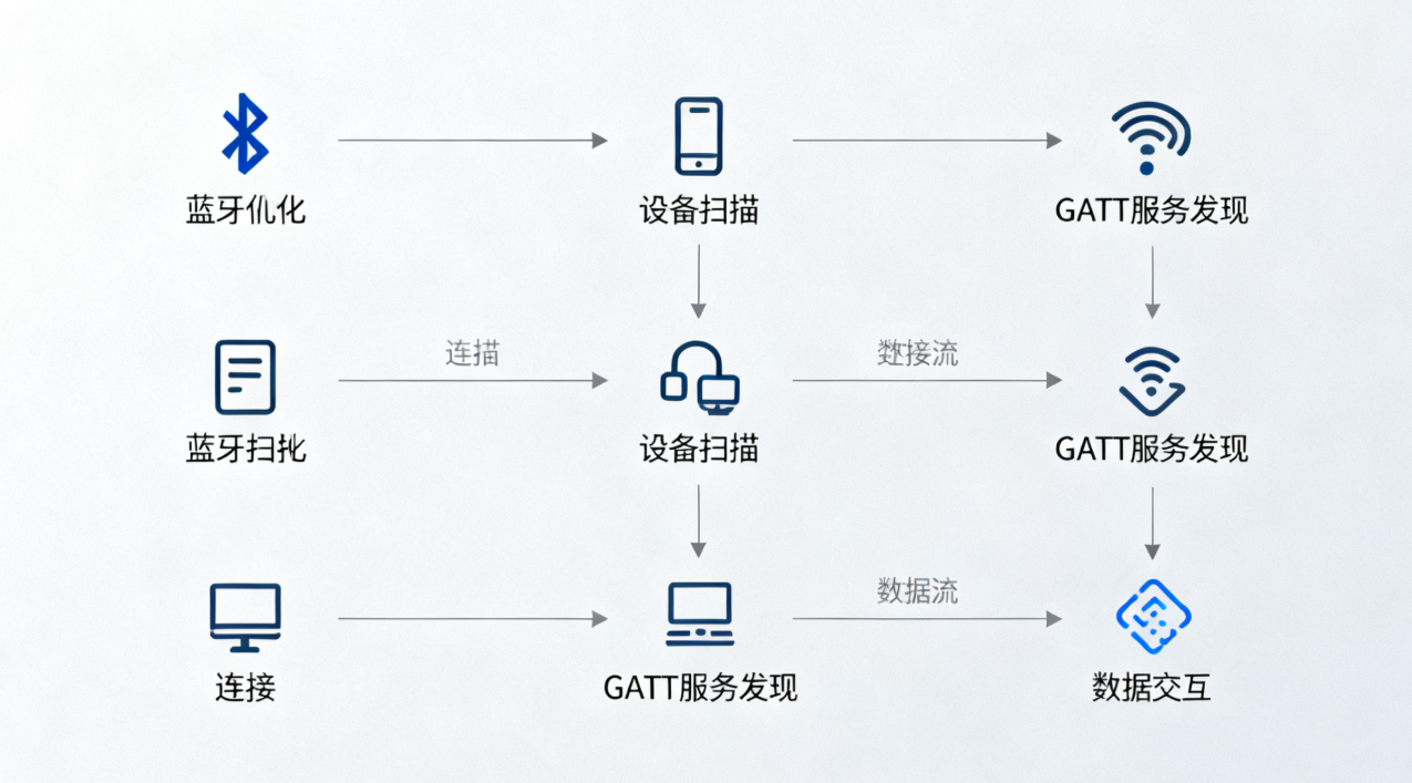 | 读写数据失败 | 1. 特征值权限不足;2. 数据格式错误;3. 设备未响应 | 1. 确认特征值支持读写操作;2. 按照设备协议格式化数据;3. 检查设备是否正常工作 |