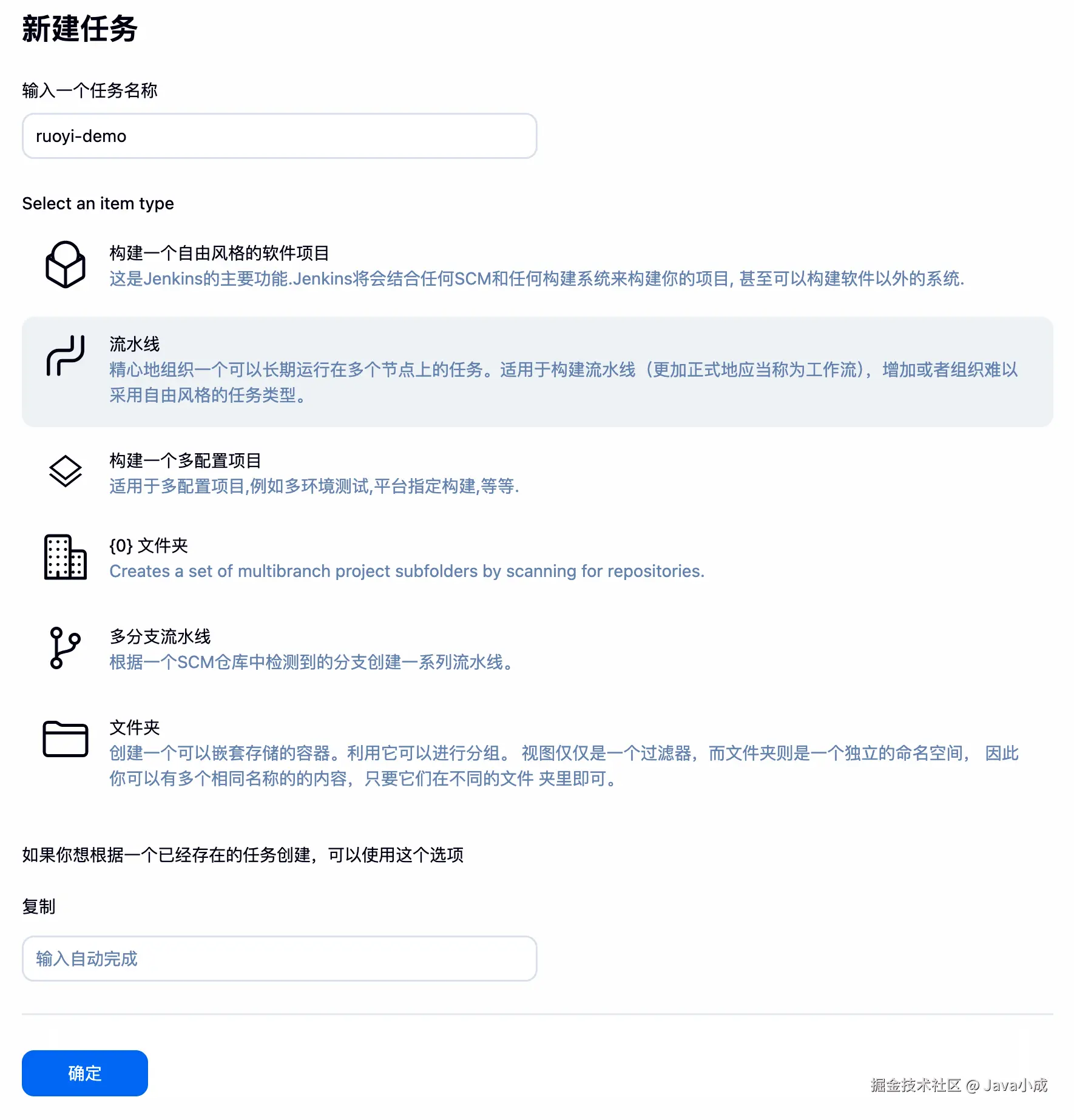 ruoyi-system-pipeline) - 选择 "流水线(Pipeline)" 类型