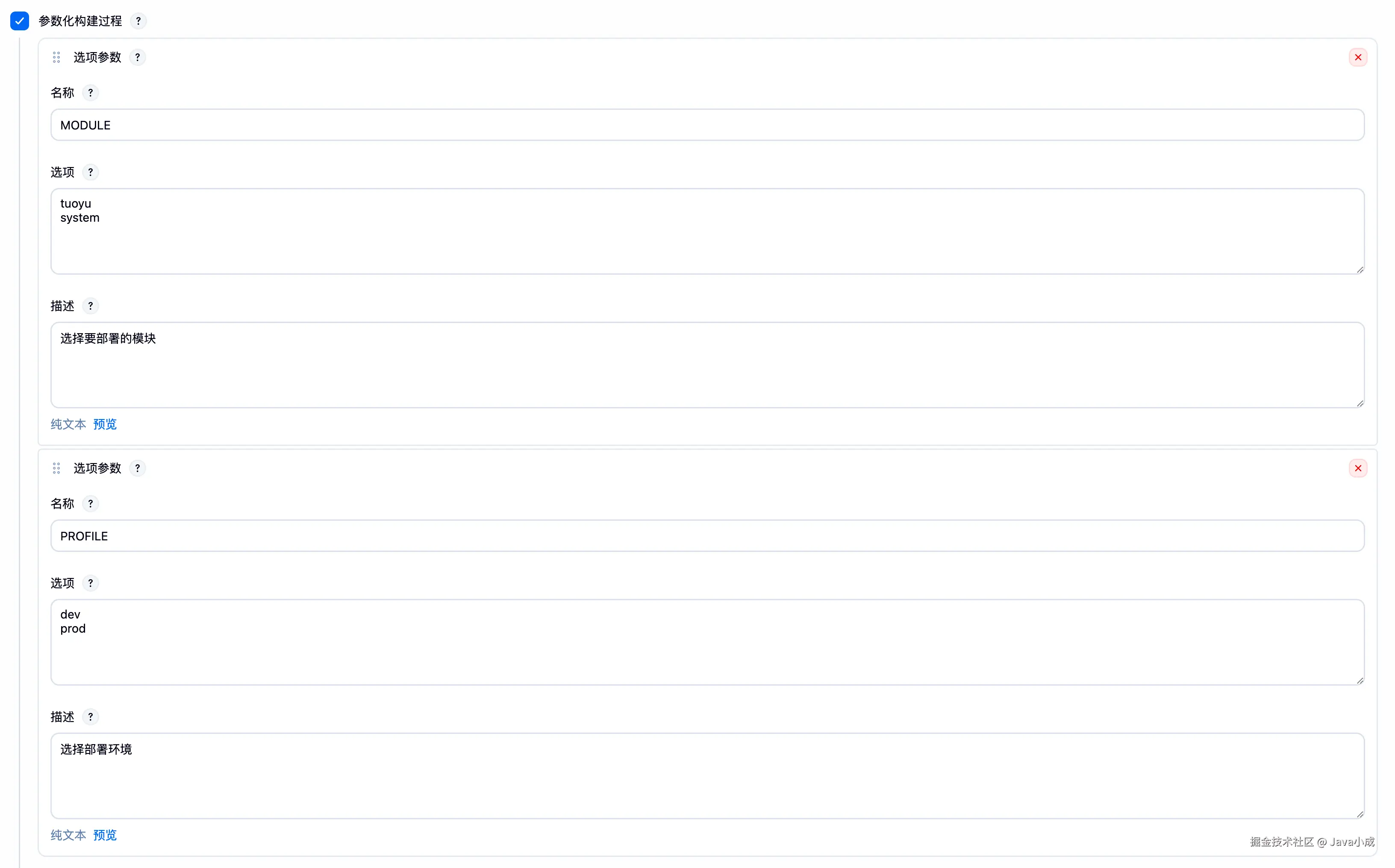 例如可以配置发布环境参数: