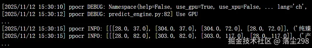 安装完成后,我们可以使用PaddleOCR自带的命令行工具进行一次快速推理,以验证环境是否正常工作。