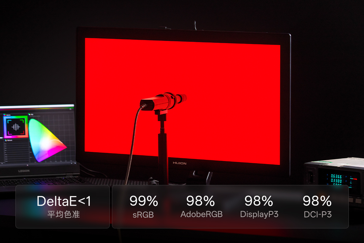 对比上一代,Kamvas Pro 27 (144Hz)数位屏的色彩管理能力进一步优化。支持 sRGB、Display P3、Adobe RGB、DCI-P3、Black&White五种色彩模式,达到Delta E<1的高色准,拥有更丰富的色彩空间以及更精准的色彩表达。除此之外,绘王新款数位屏标配了自研的G1校色仪和GTColor校色软件,在用户模式下可自由进行硬件级色彩调校,以满足个性化调色的需求。