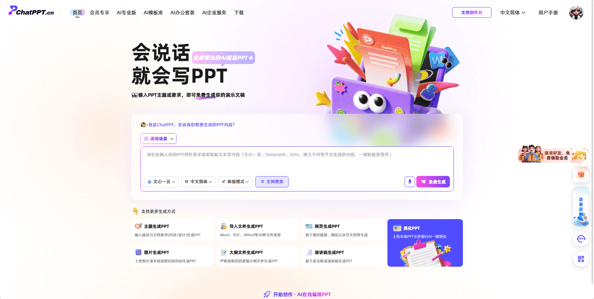 | ChatPPT | 对话式深度交互,像助手一样帮你边聊边改 | 输入主题/关键词、上传图片、粘贴链接 | 追求高度定制、需要反复打磨内容的深度用户 |