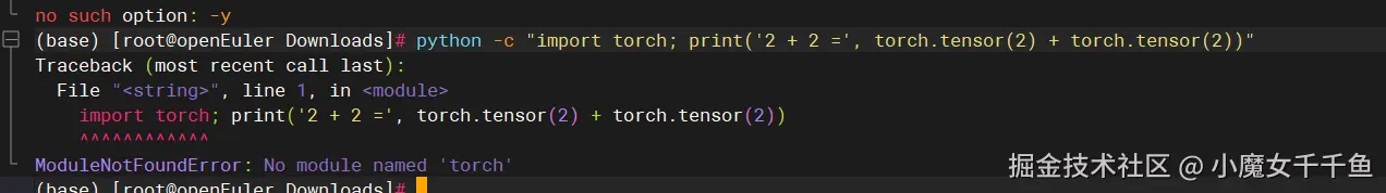 python -c "import torch; print('2 + 2 =', torch.tensor(2) + torch.tensor(2))"