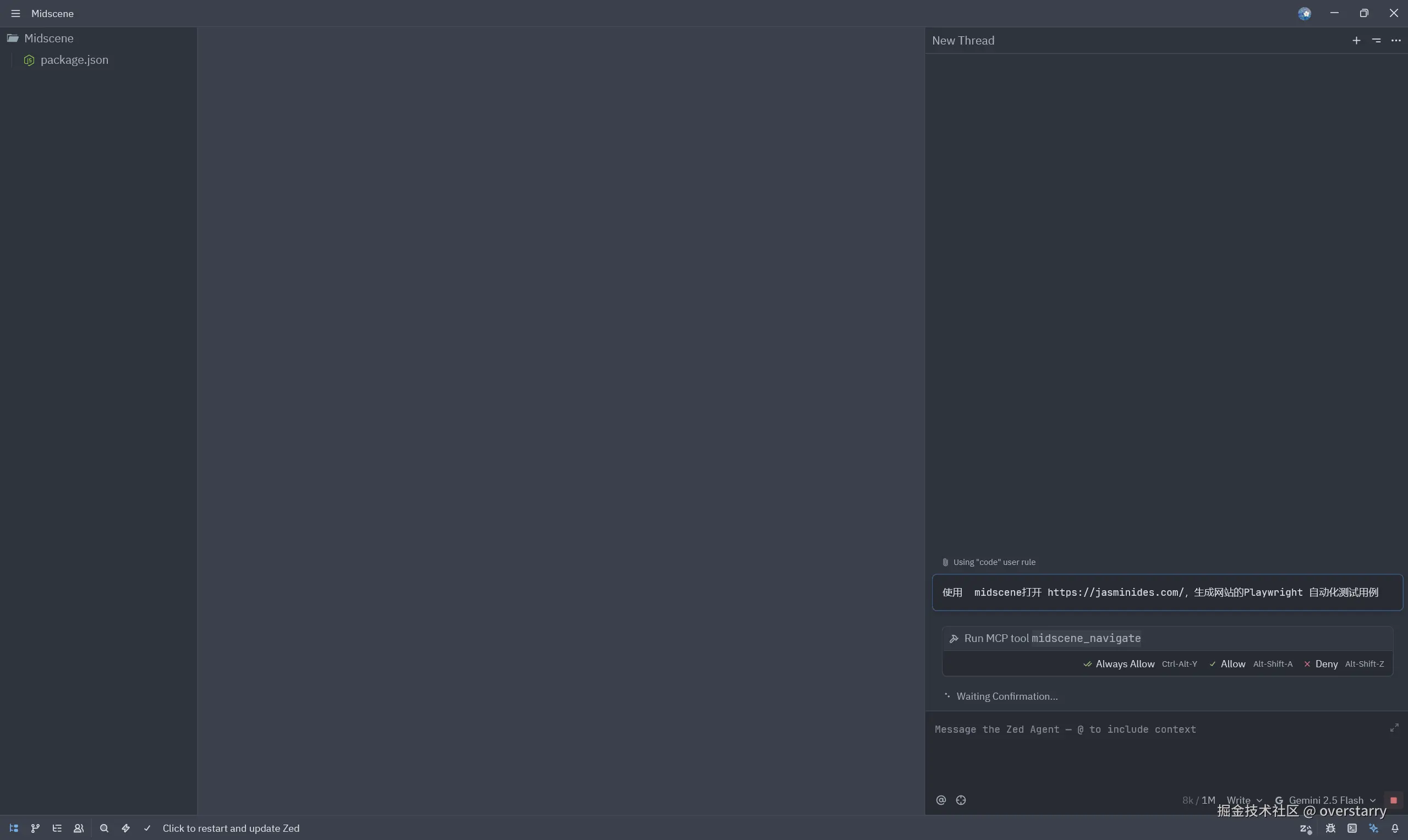 操作环境使用 zed 连接 Midscene mcp,mcp配置如下: