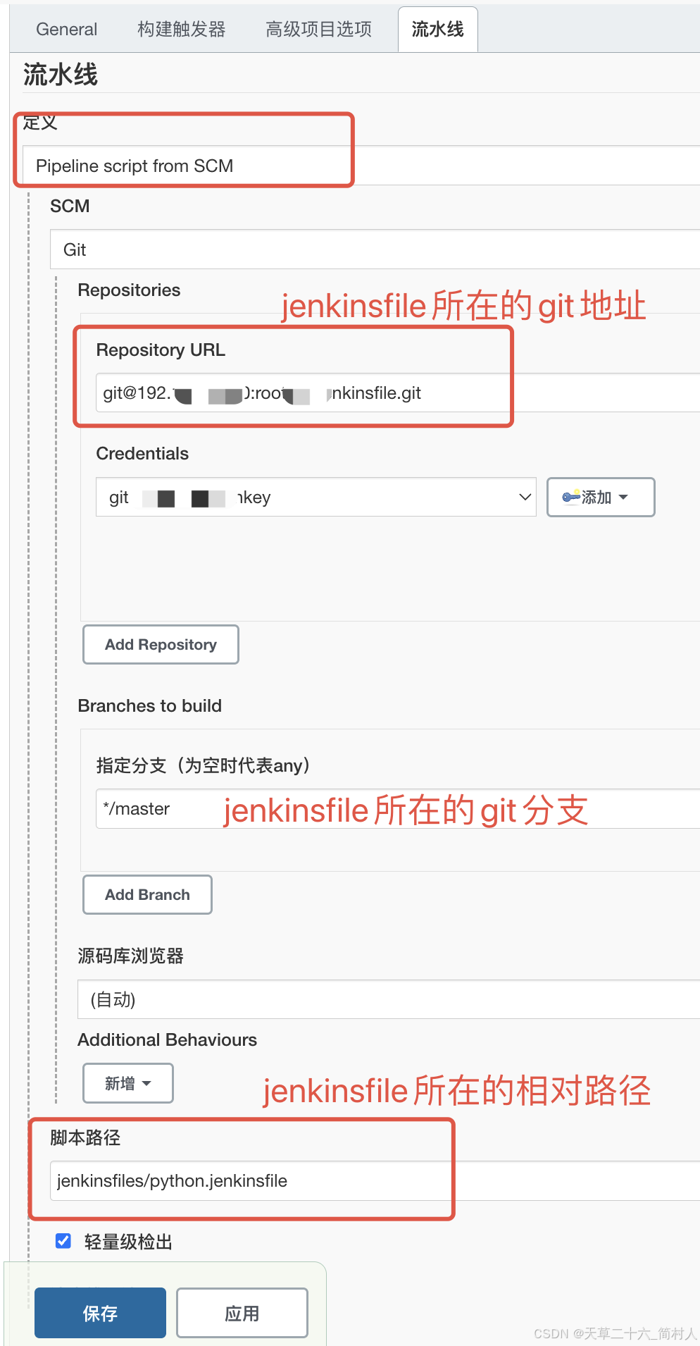 jenkins job 除了配置变量外,关键是配置jenkinsfile所在的git地址、分支以及相对路径。