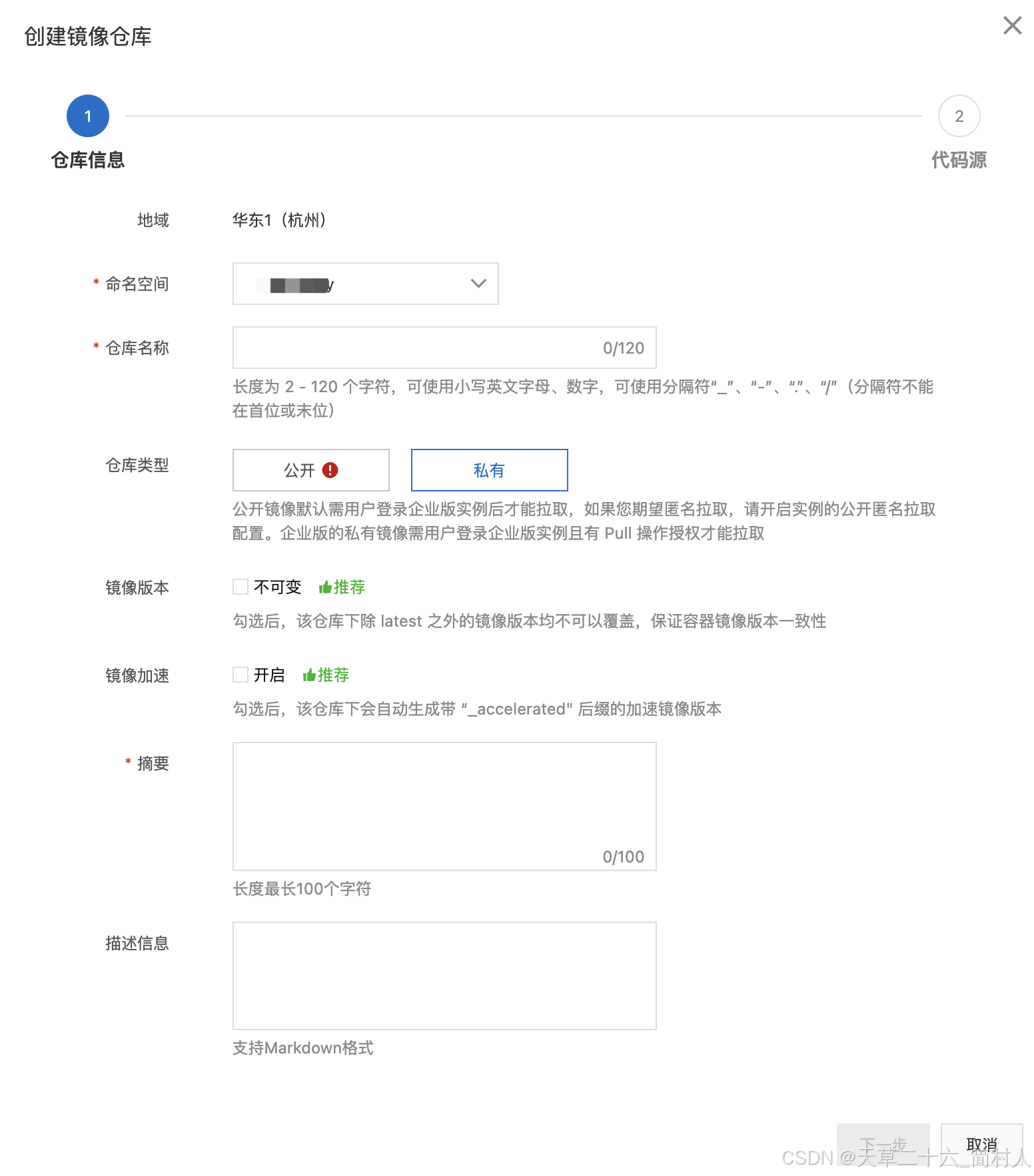 阿里云容器镜像服务,先创建镜像仓库。